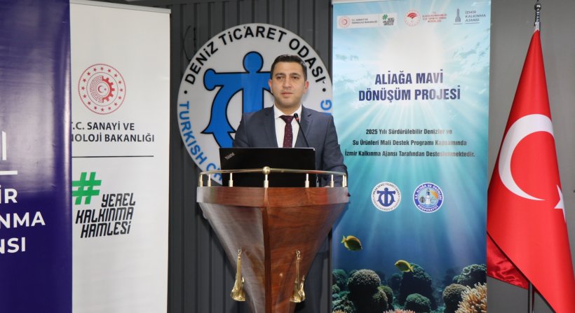İzmir Kalkınma Ajansı’nın (İZKA) “Sürdürülebilir Denizler ve Su Ürünleri Üretimi Mali Destek Programı” kapsamında desteklenen Aliağa Körfezi Mavi Dönüşüm Projesinin tanıtım toplantısı, İMEAK Deniz Ticaret Odası Aliağa Şubesi konferans salonunda gerçekleştirildi. Proje; Aliağa İlçe Tarım ve Orman Müdürlüğü tarafından yürütülürken, İMEAK Deniz Ticaret Odası Aliağa Şubesi ile Aliağa Merkez Su Ürünleri Kooperatifi proje ortağı olarak çalışmada aktif rol alacak.